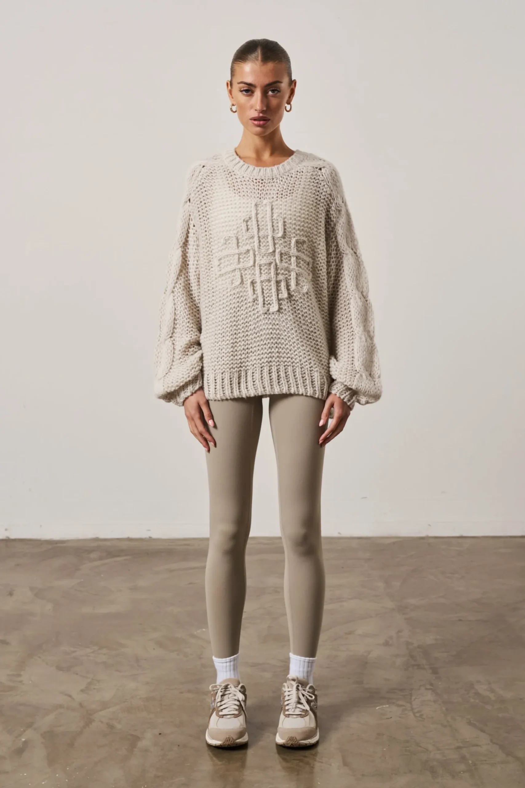 Colour: StoneDetails:- Oversized Fit Jumper With Dropped Shoulder