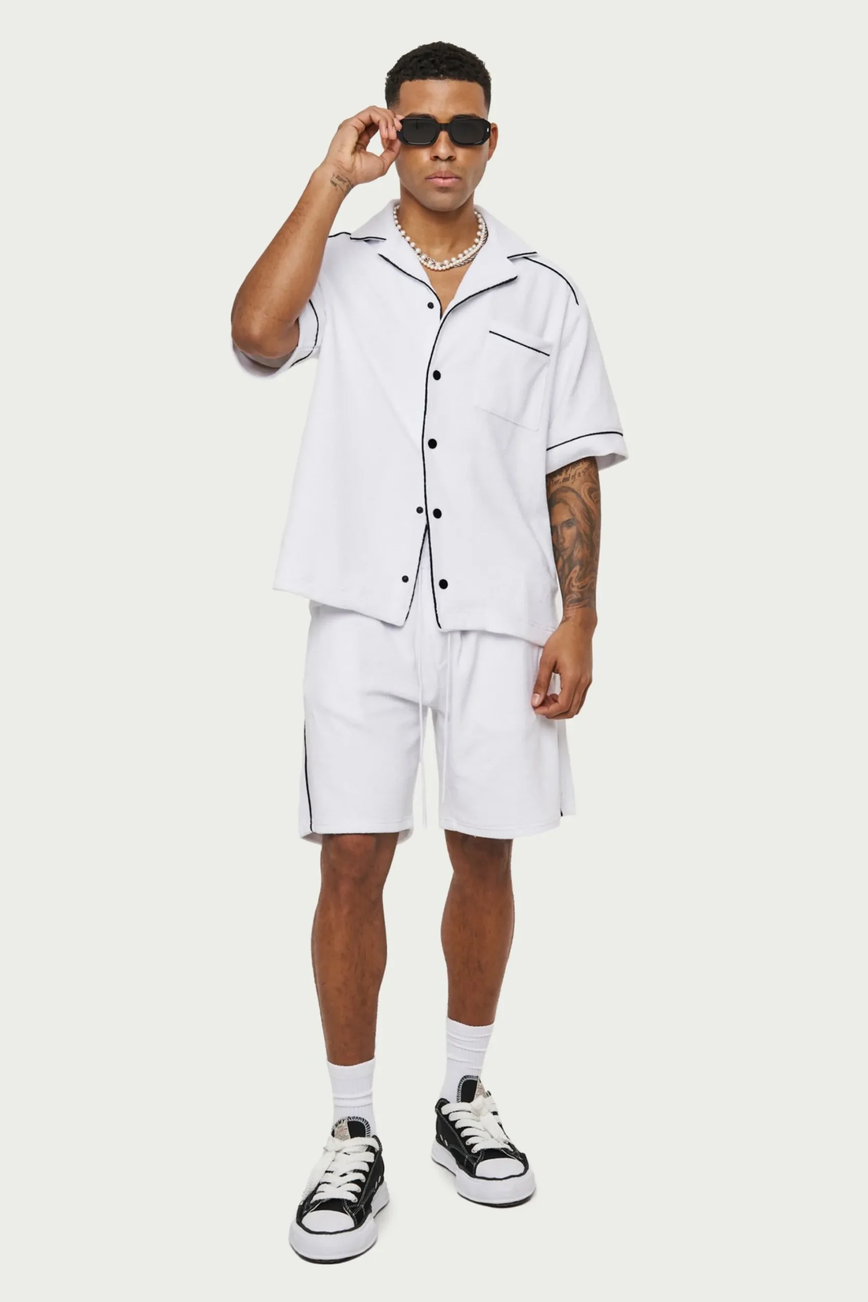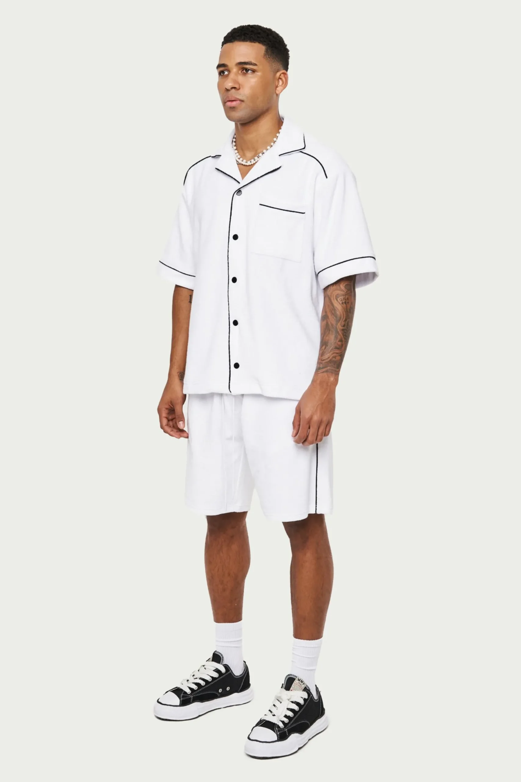 Colour:WhiteDetails:- Relaxed Fit Revere Shirt With Dropped Shoulder