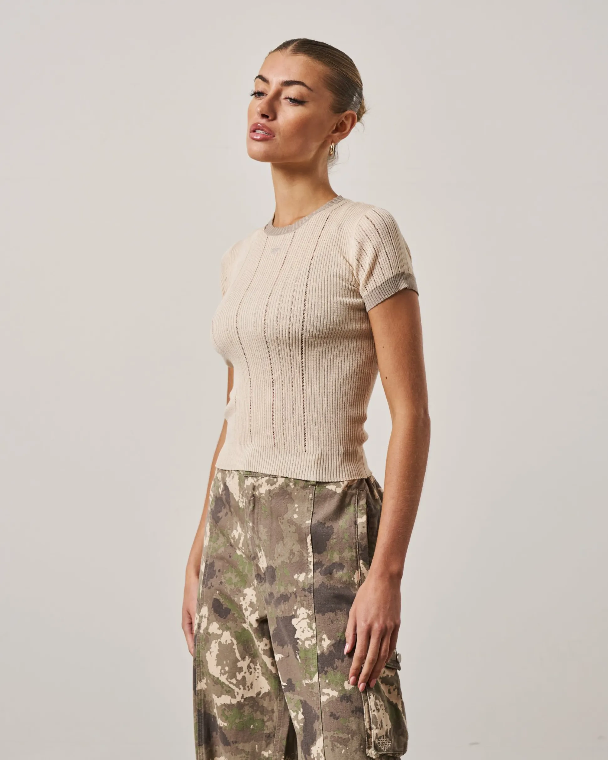Colour: StoneDetails:- Fitted Knit Baby Tee