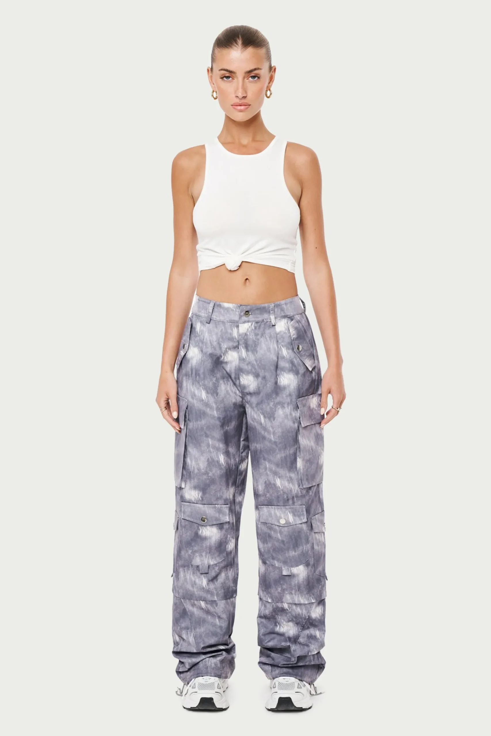 Colour: GreyDetails:- Oversize Fit Tie Hem Cargos