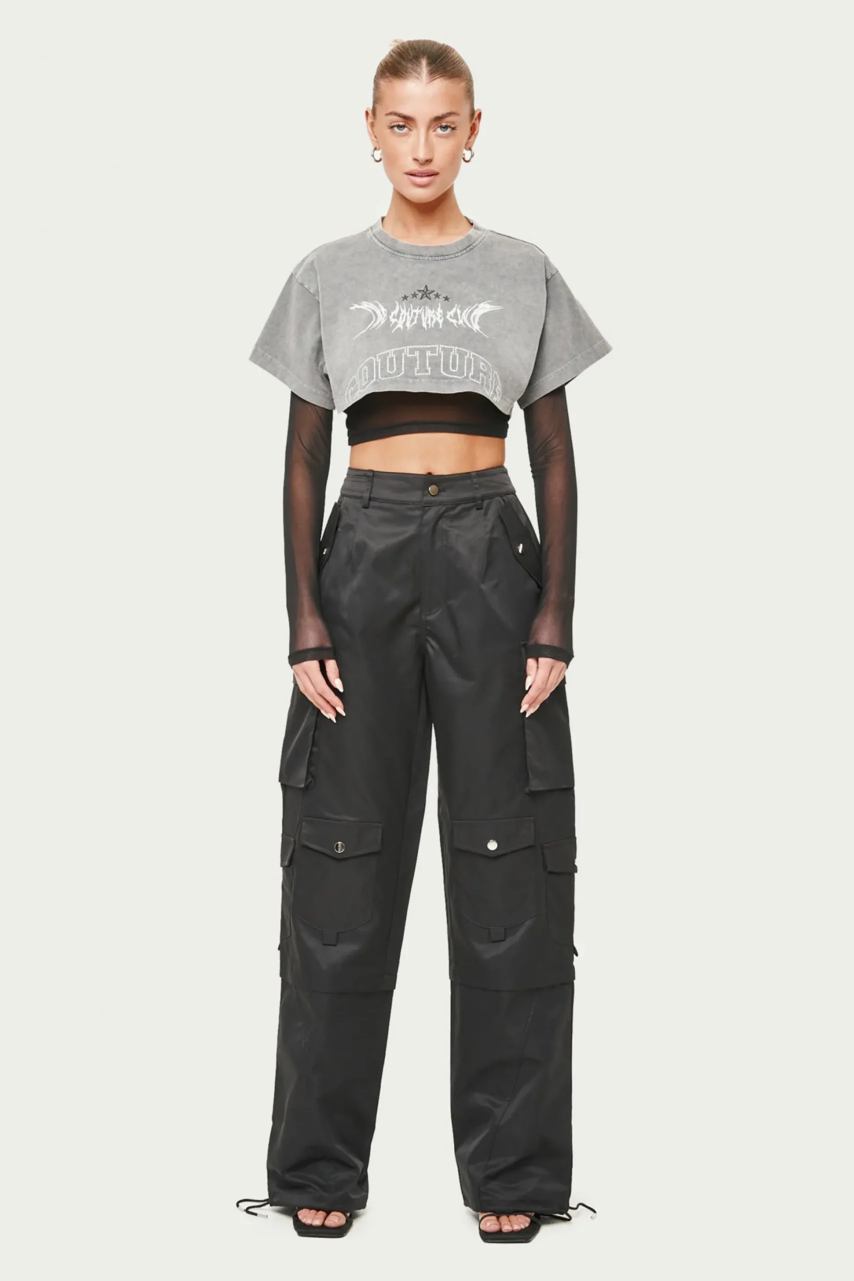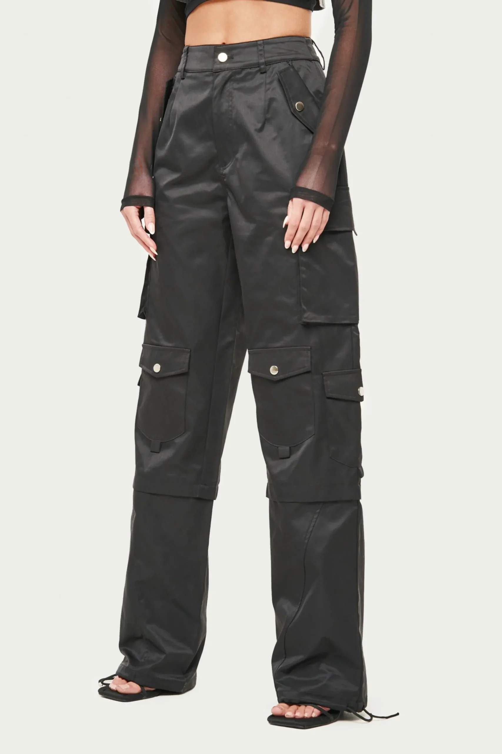 Colour: BlackDetails:- Oversize Fit Tie Hem Cargos