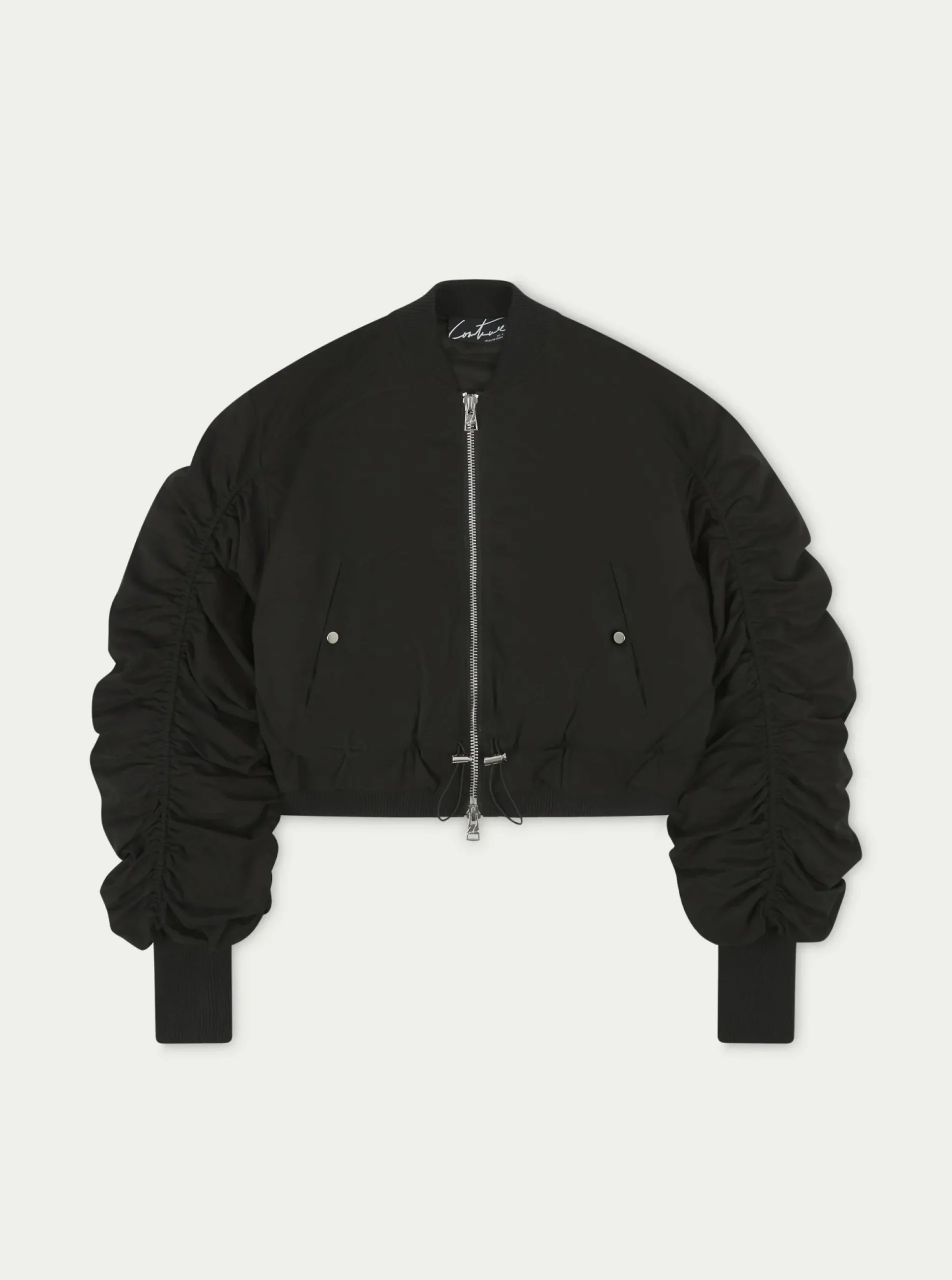 Colour: BlackDetails:- Cropped Oversized Bomber Jacket