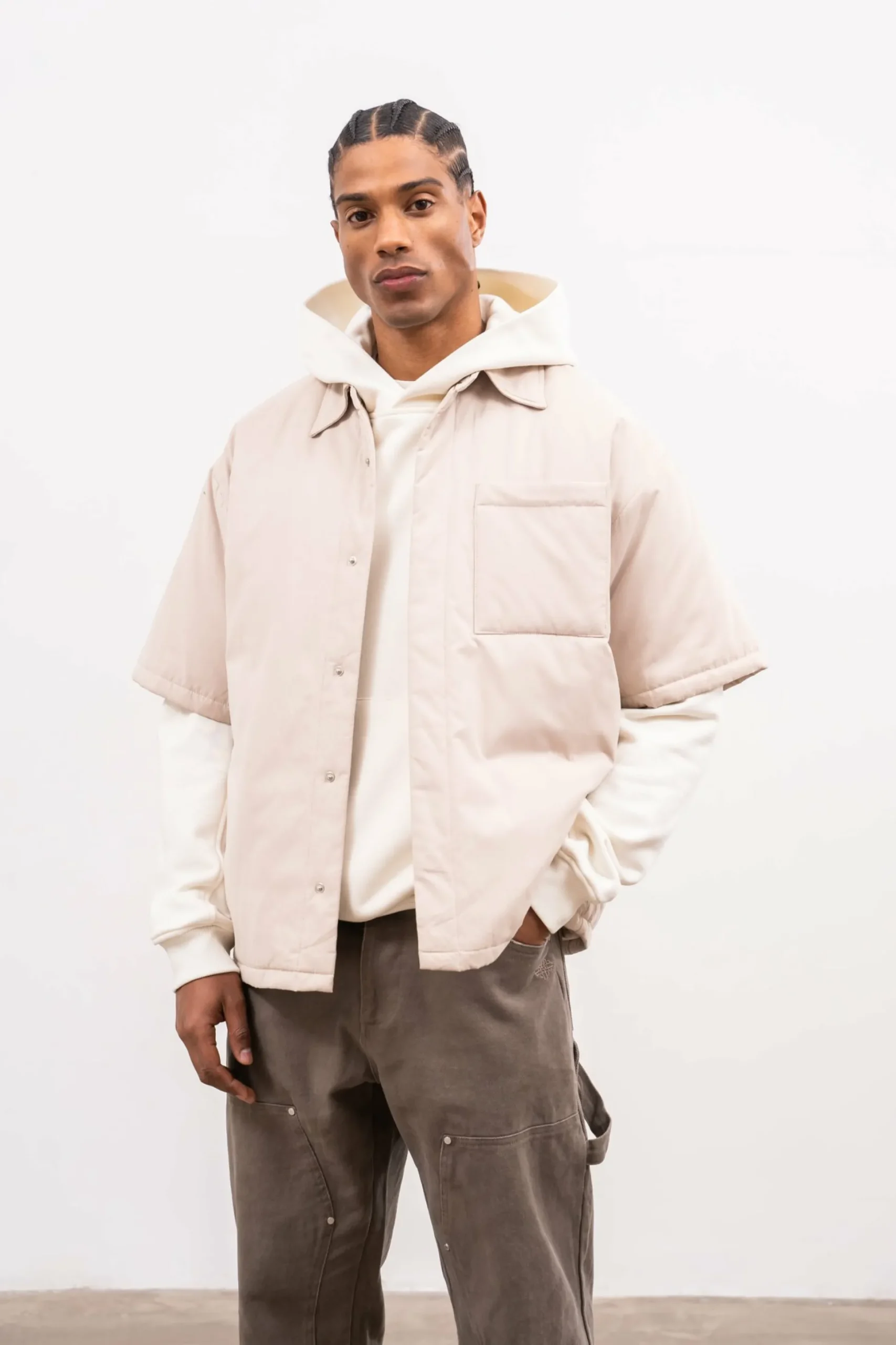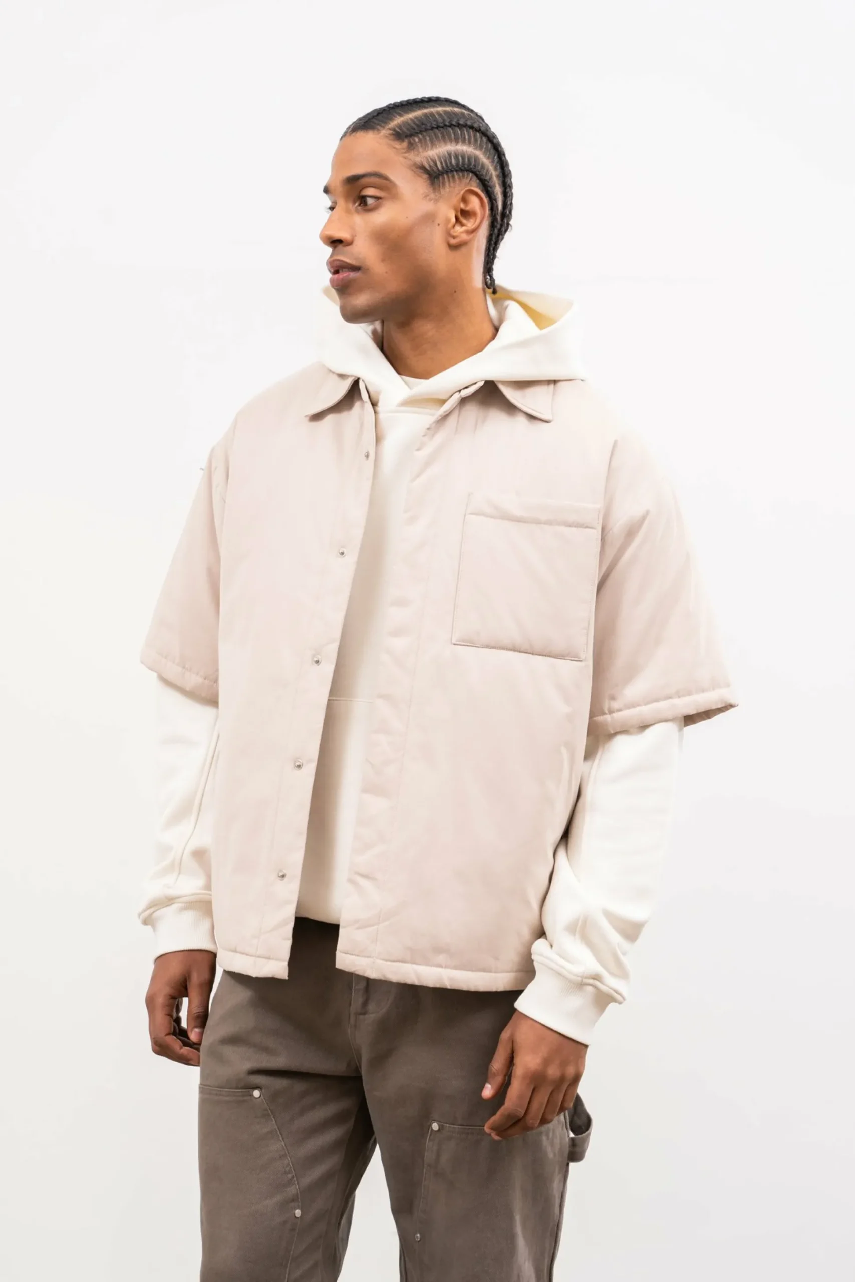 Colour: Off WhiteDetails:- Padded Relaxed Fitshort Sleeved Shirt