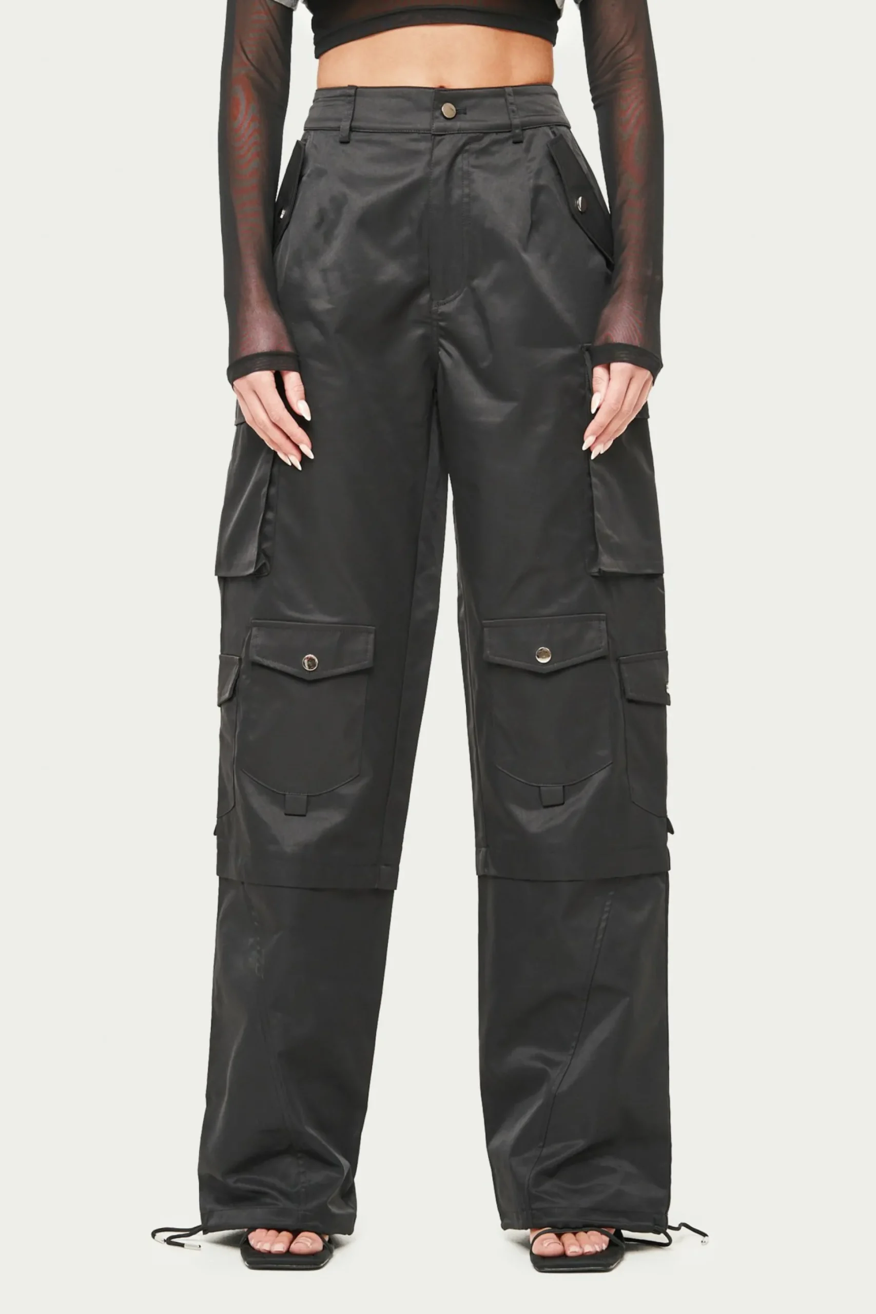 Colour: BlackDetails:- Oversize Fit Tie Hem Cargos