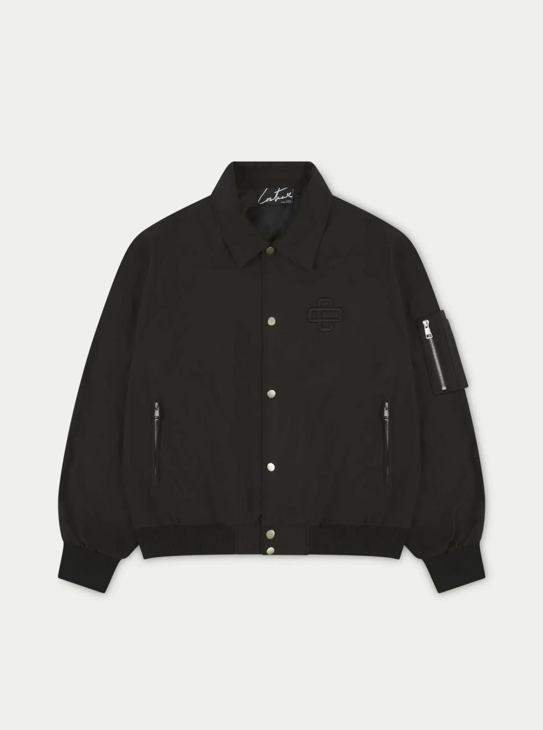 Colour: BlackDetails:- Relaxed Fit Bomber Jacket