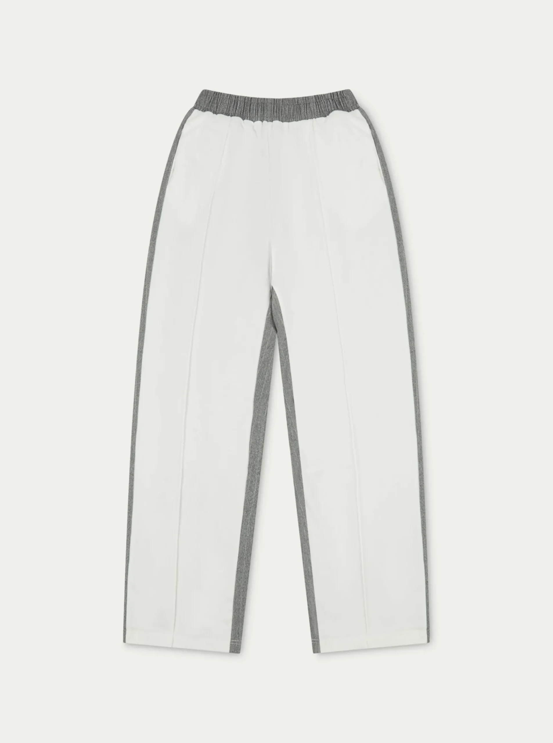 Colour: Off White / GreyDetails:- Wide Leg Contrast Fabric Joggers
